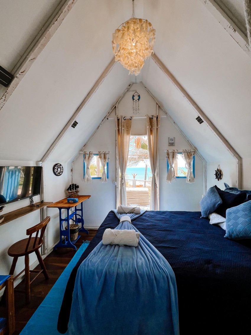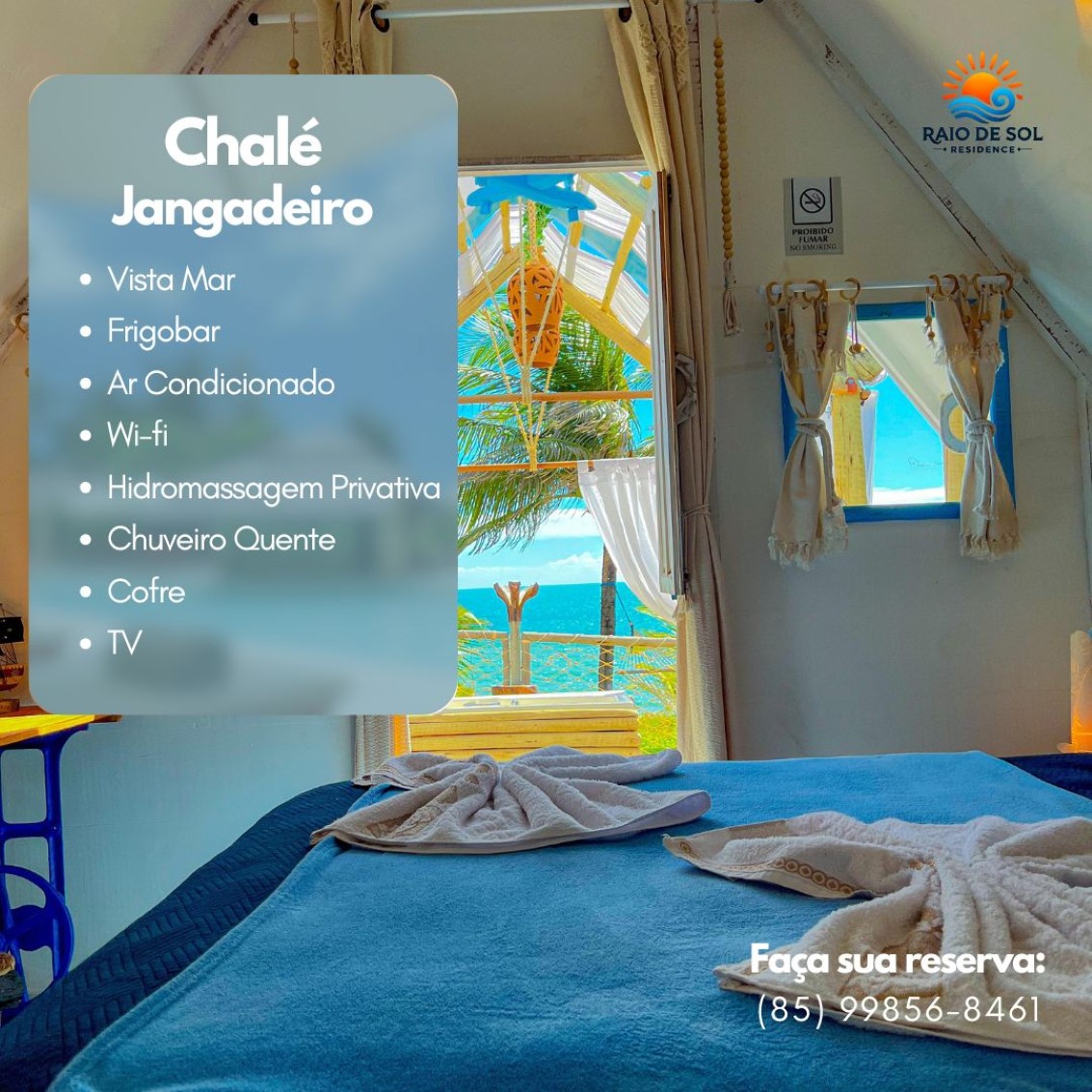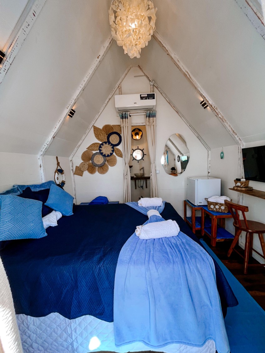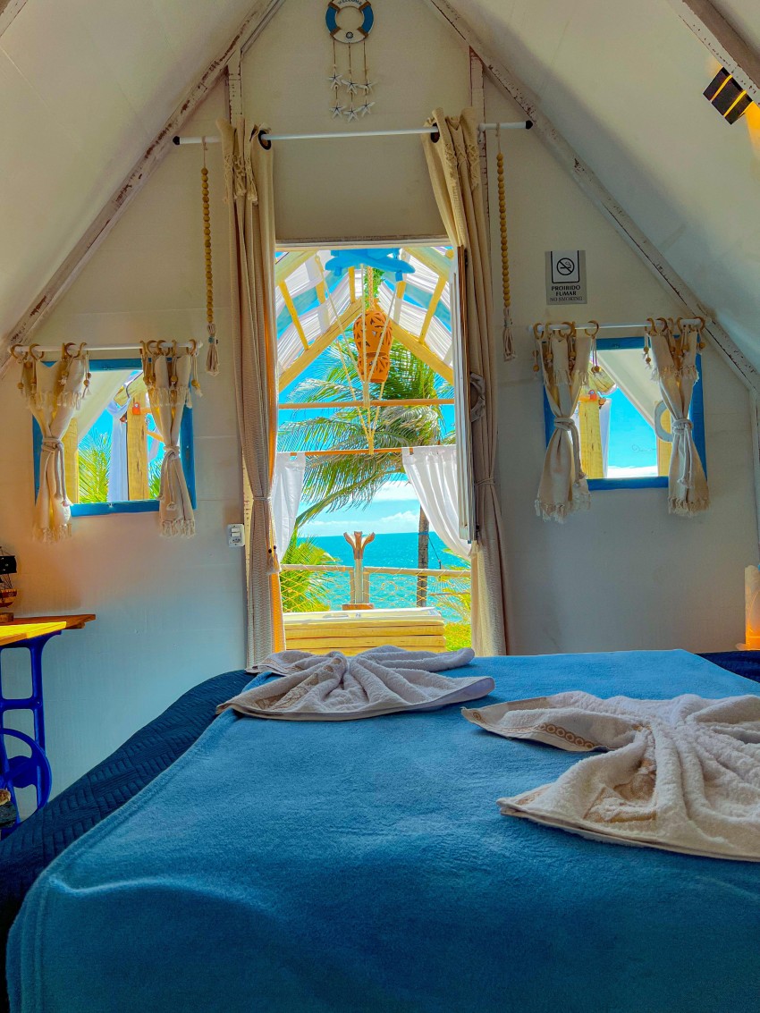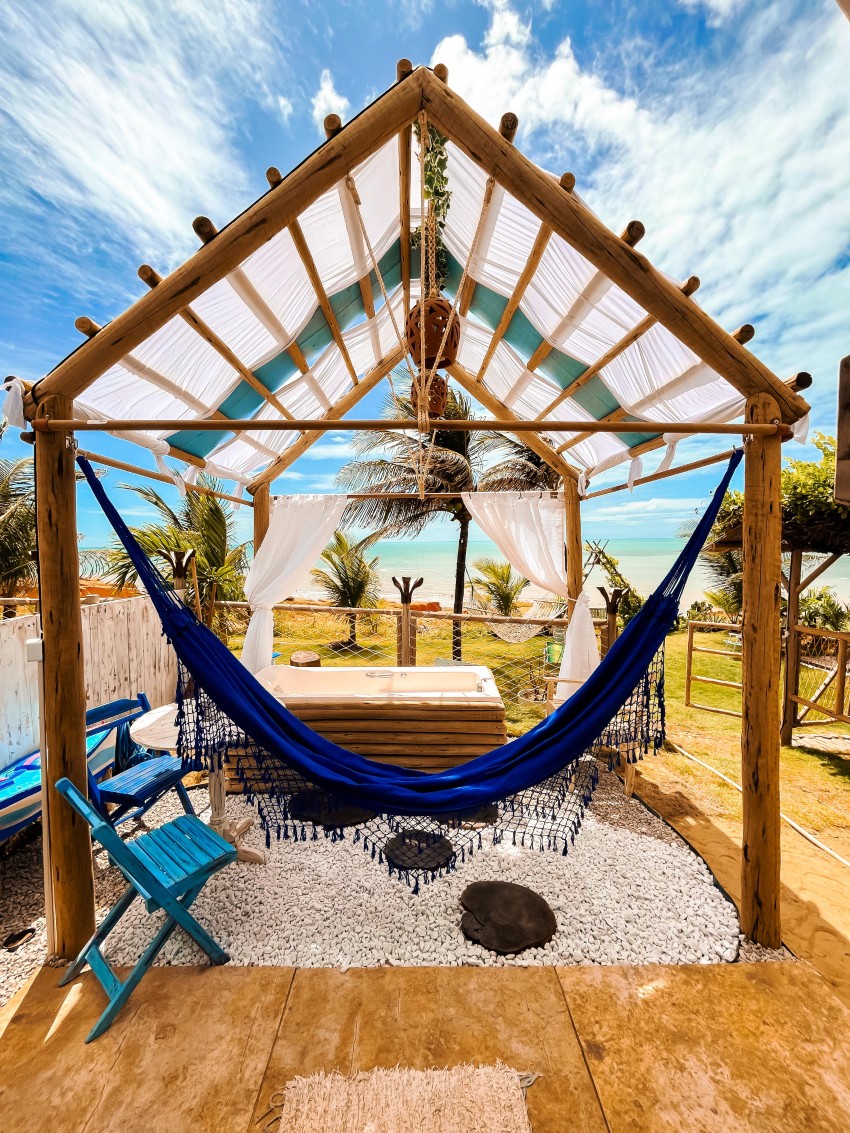 Chalé exclusivo com frente mar e hidromassagem privativa, ideal para casais que buscam conforto e uma vista deslumbrante com 1 cama de casal, TV, Frigobar, Ar-Condiiconado, Wi-fi, Banheiro privativo