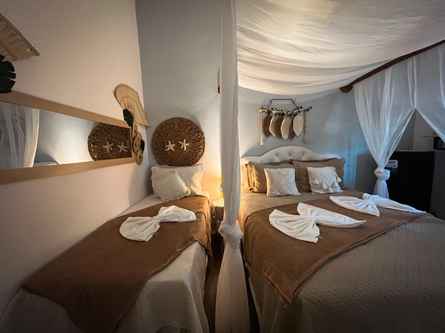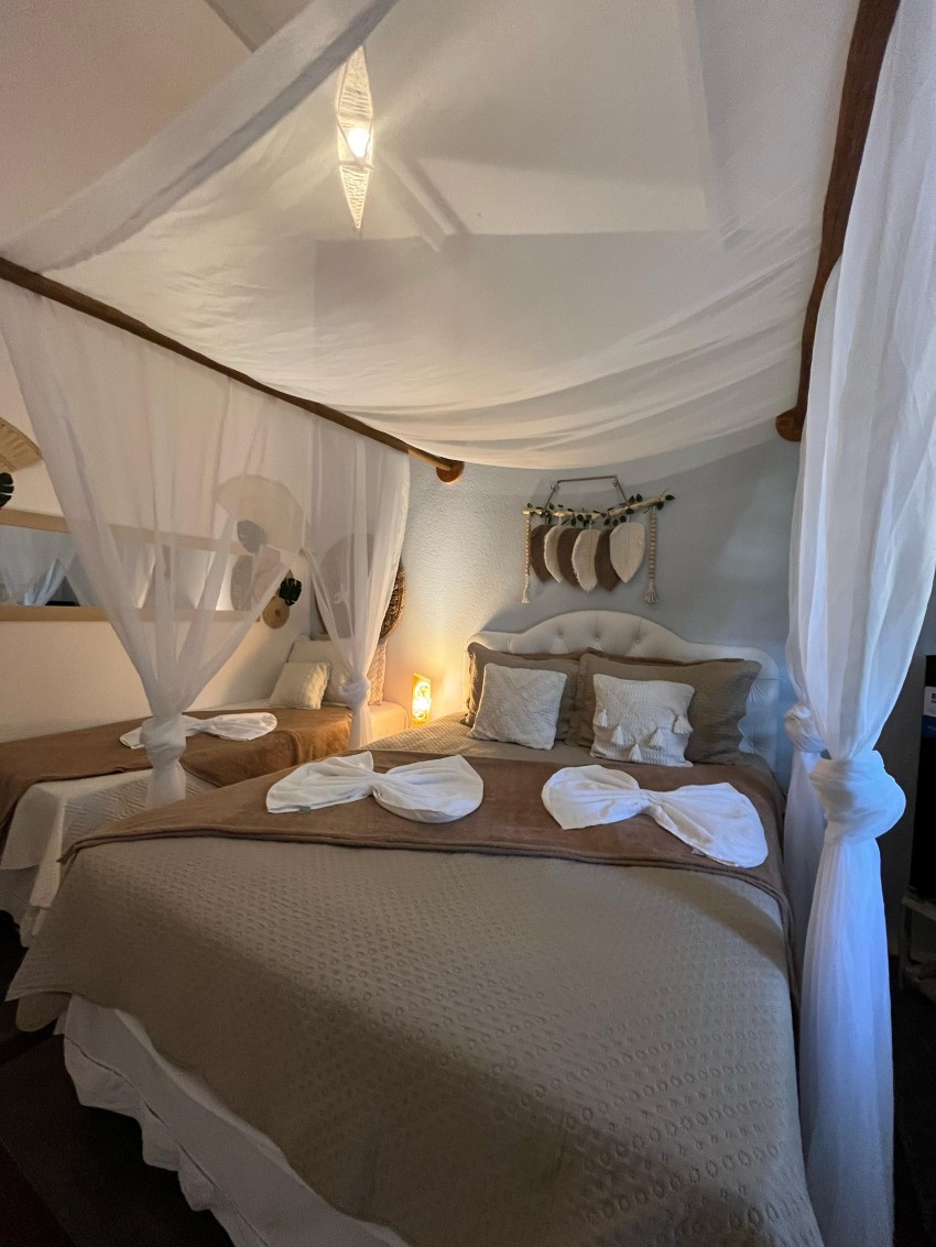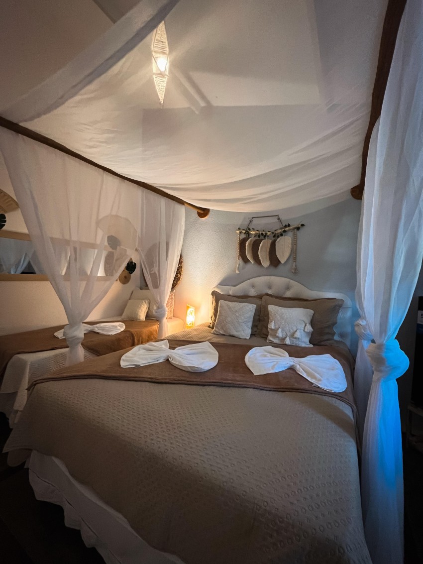 Ambiente acolhedor, ideal para quem busca custo-benefício com muito charme com 1 cama de casal + 1 cama de solteiro, TV, Frigobar, Ar-Condiiconado, Wi-fi, Banheiro privativo