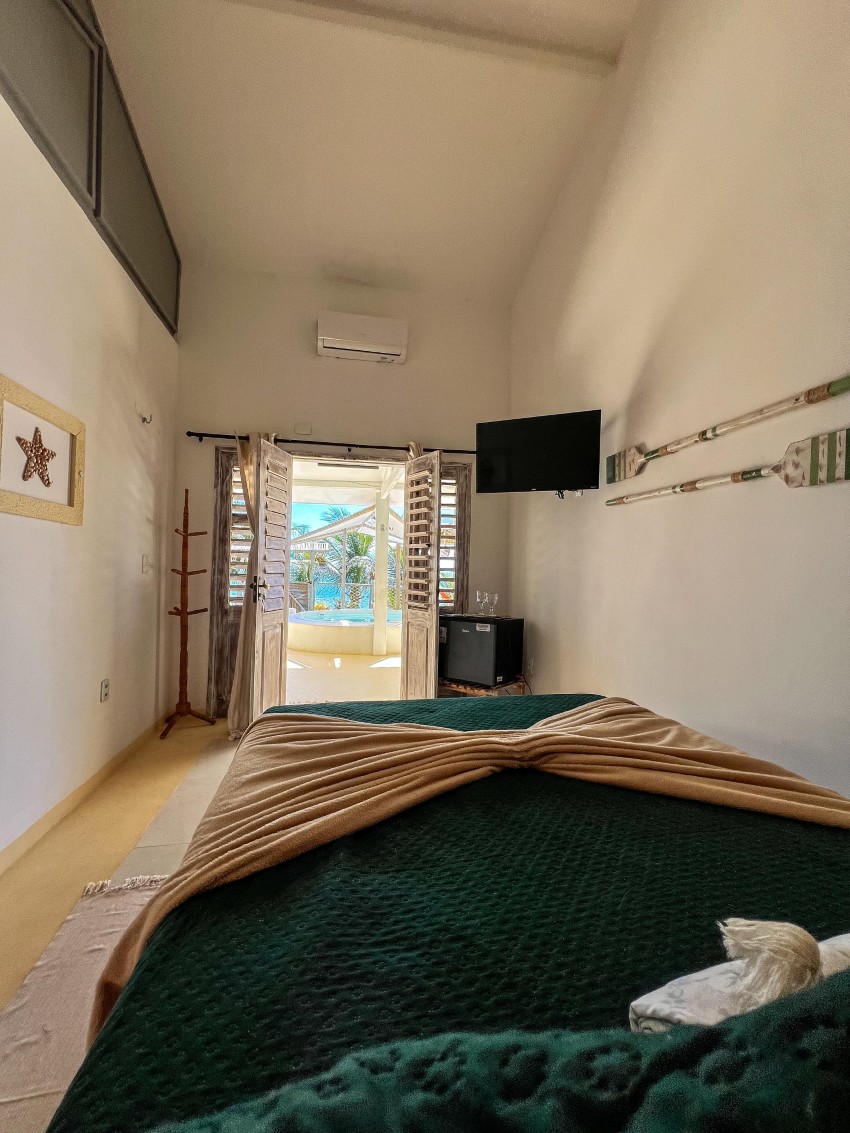 Ideal para casais que desejam relaxar com conforto e vista para o mar com 1 cama de casal, TV, Frigobar, Ar-Condiiconado, Wi-fi, Banheiro privativo